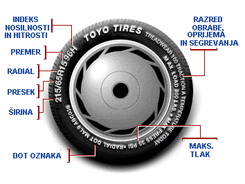 Na bočnici (stranicah) pnevmatike se nahajajo naslednje pomembne oznake, na katere morate biti pozorni pri izbiri svojih novih pnevmatik :